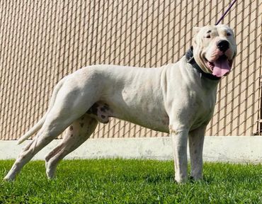 She is a large, well-built female Dogo, weighing approximately 92 lbs, with a broad chest and a classic blocky head. Through her lineage — particularly Mambo and Ava — Red has inherited a balanced prey drive and the strong, defining traits of the De La Cocha bloodline, including drive, structure, and instinct.